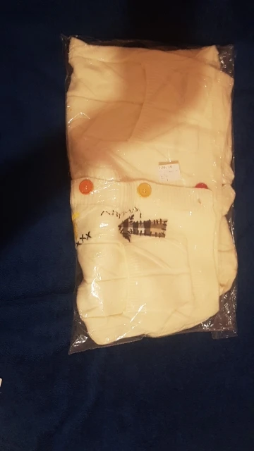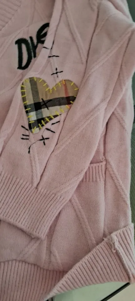bouclés, mes manches de taille ressemblent à du 3/4, mais je les préfère, la broderie est excellente, le tricot est épais