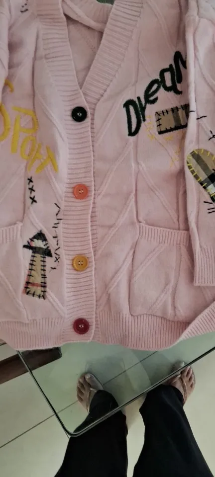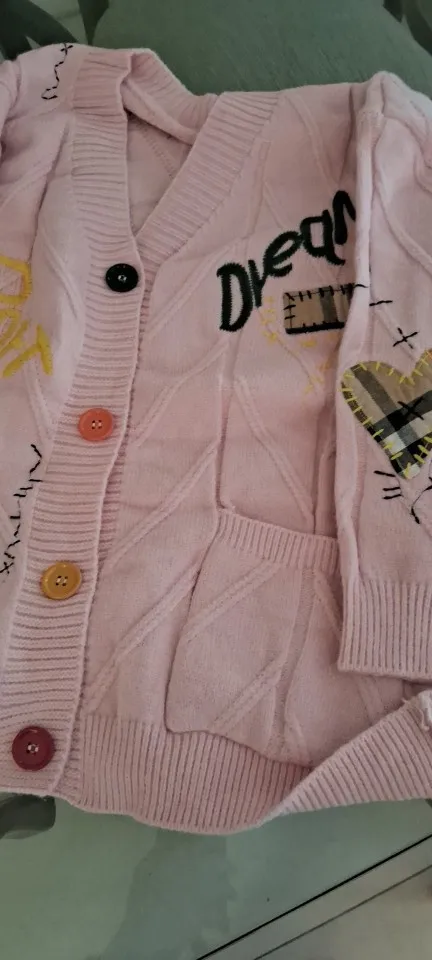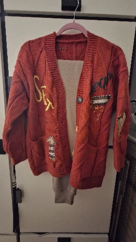Un cardigan ample en maille chaude avec broderies colorées et boutons multicolores qui ajoutent une touche fun et unique.